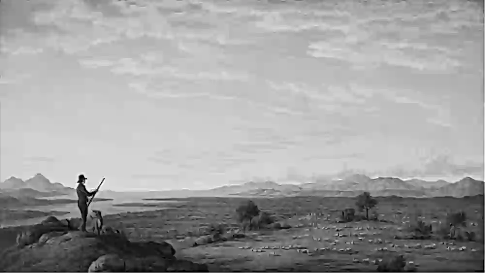 Simultaneously about landscape, Country and identity, The Biggest Estate on Earth is a large work that melds Indigenous and non-Indigenous history, art, anthropology, botany and environmental science. It reveals the complex, Country-wide systems of land management used by Aboriginal people in pre-settlement Australia. These systems were ultimately displaced and dismantled by early Europeans settlers, who commented again and again that the land looked like a park, with extensive grassy patches and pathways, open woodlands, and abundant wildlife.